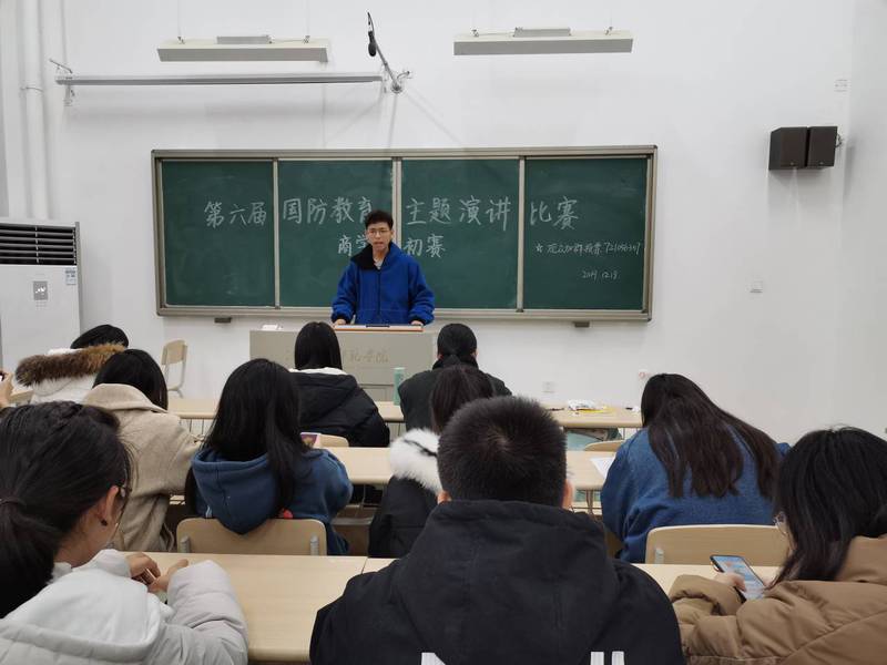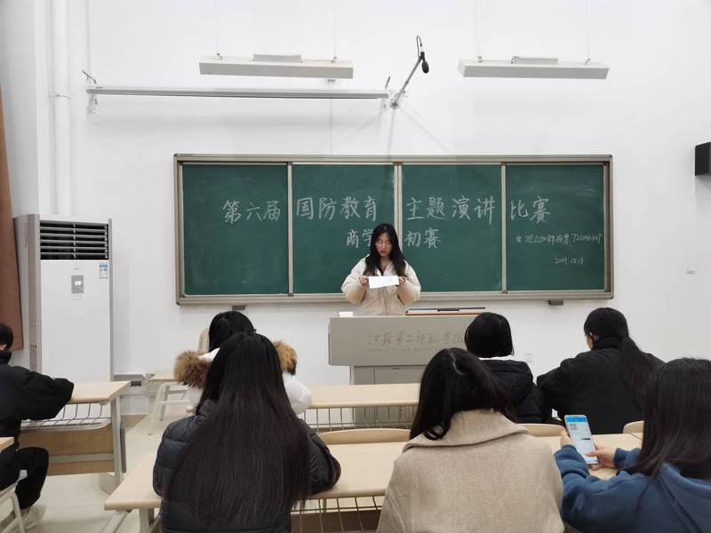 12月18日下午,为了响应江苏第二师范学院人民武装部的国防教育指导,商学院于石湫校区博学楼1-114开展了“峥嵘七十载,奋进新时代”第六届国防教育主题演讲比赛初赛。