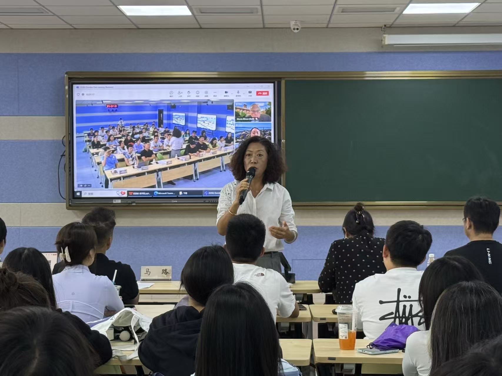 张淼向新生们提出了三点殷切期望:一是求真务实,攻克语言关。扎实的英语能力是留学成功的基石,必须将雅思学习作为国内阶段的首要任务。二是精益求精,锤炼真本领。不断提升自己的专业知识和综合素养,培养创新思维与解决问题的能力,在未来的竞争中立于不败之地。三是严于律己,善用资源。要尽快完成从高中到大学的思维转变,杜绝“躺平”心态,充分利用两校的优质资源,将自己锻造为具备全球视野与国际竞争力的卓越人才。