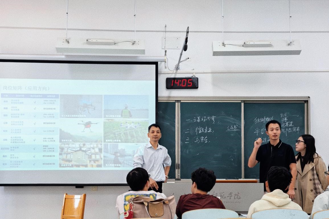 课程伊始,孙爱军教授为同学们带来了题为《中国低空经济发展与人才机遇》的开幕讲座。他从国家政策、技术演进和市场应用等多个维度,系统阐述了无人机技术的广泛应用,在讲课期间,还与京东等合作方代表就课程共建、人才共育等进行了深入交流,展现了校企协同、共拓产业新赛道的决心,还特别强调了低空经济作为战略性新兴产业所蕴含的巨大潜力,并详细分析了相关行业的广阔就业前景,鼓励同学们抓住时代机遇,掌握前沿技能,为未来职业发展抢占先机。