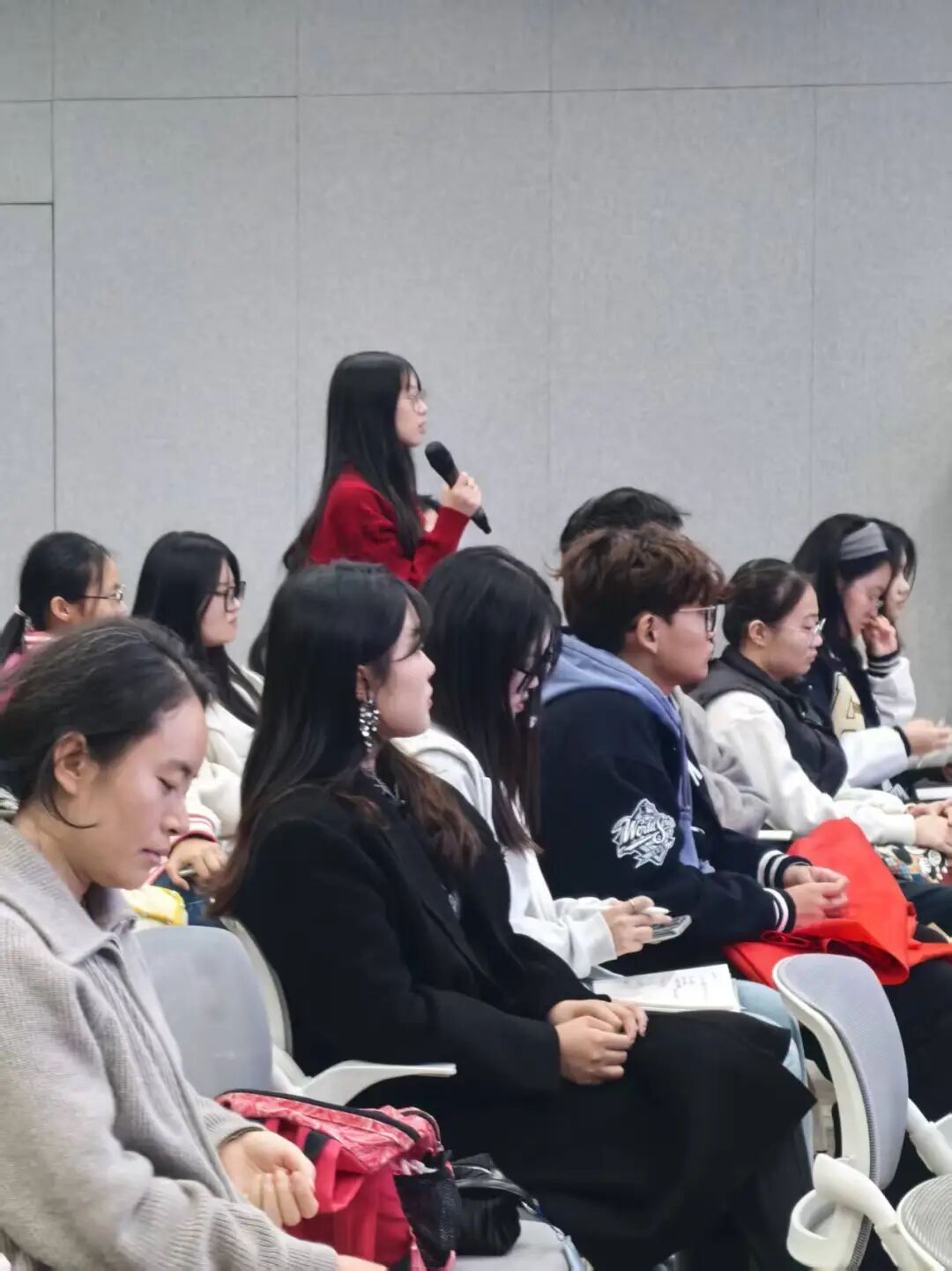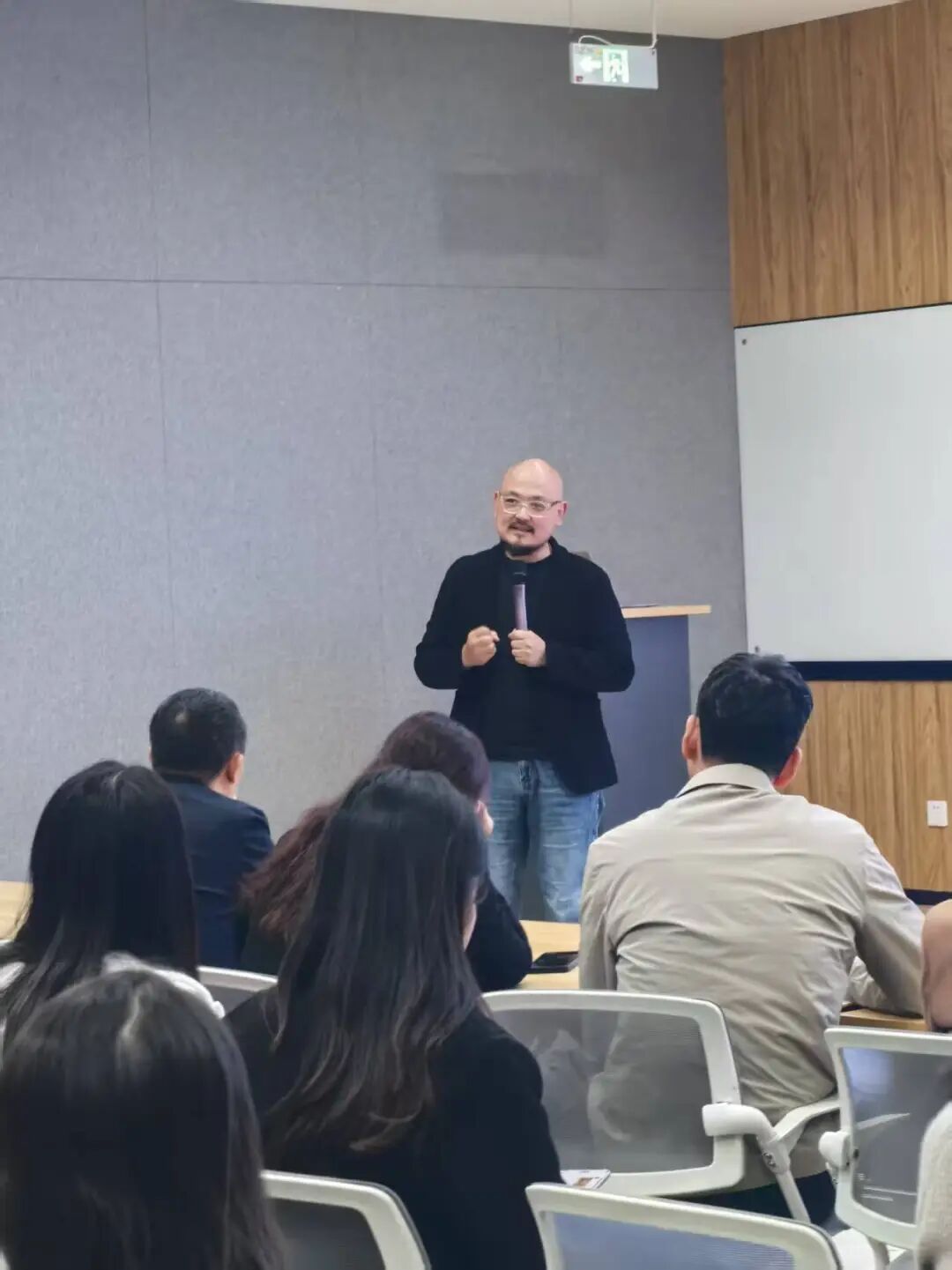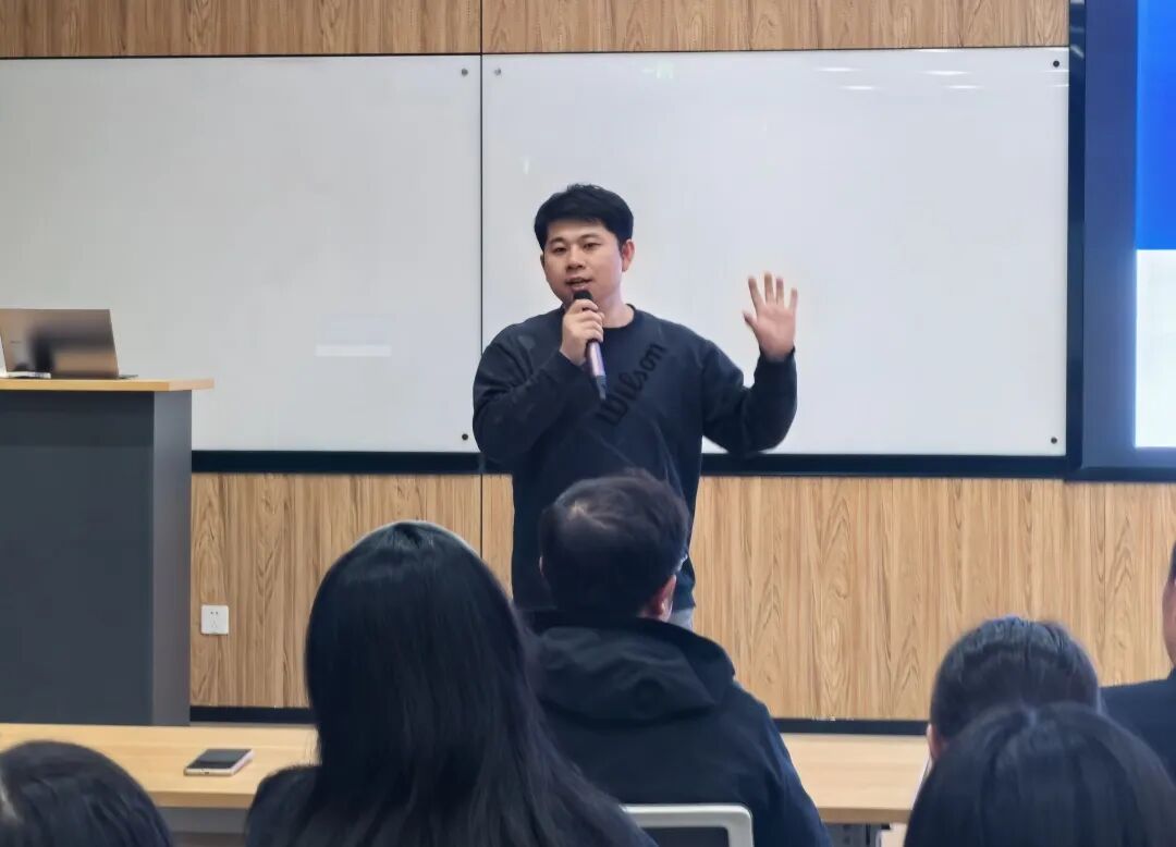 在创业者与学生交流环节,谭宁总经理及其团队分享了宝贵的经验:谭宁结合自身创业经历和刘润的《底层逻辑》,提出资产管理需聚焦客户需求、探索新业态,强调“兴趣+执行力+责任感”是创业的核心;混沌商学院南京社长黄智威则聚焦AI落地,建议学生以《穷查理宝典》为参考,构建思维框架,指出“思路开阔比专业性更重要”。