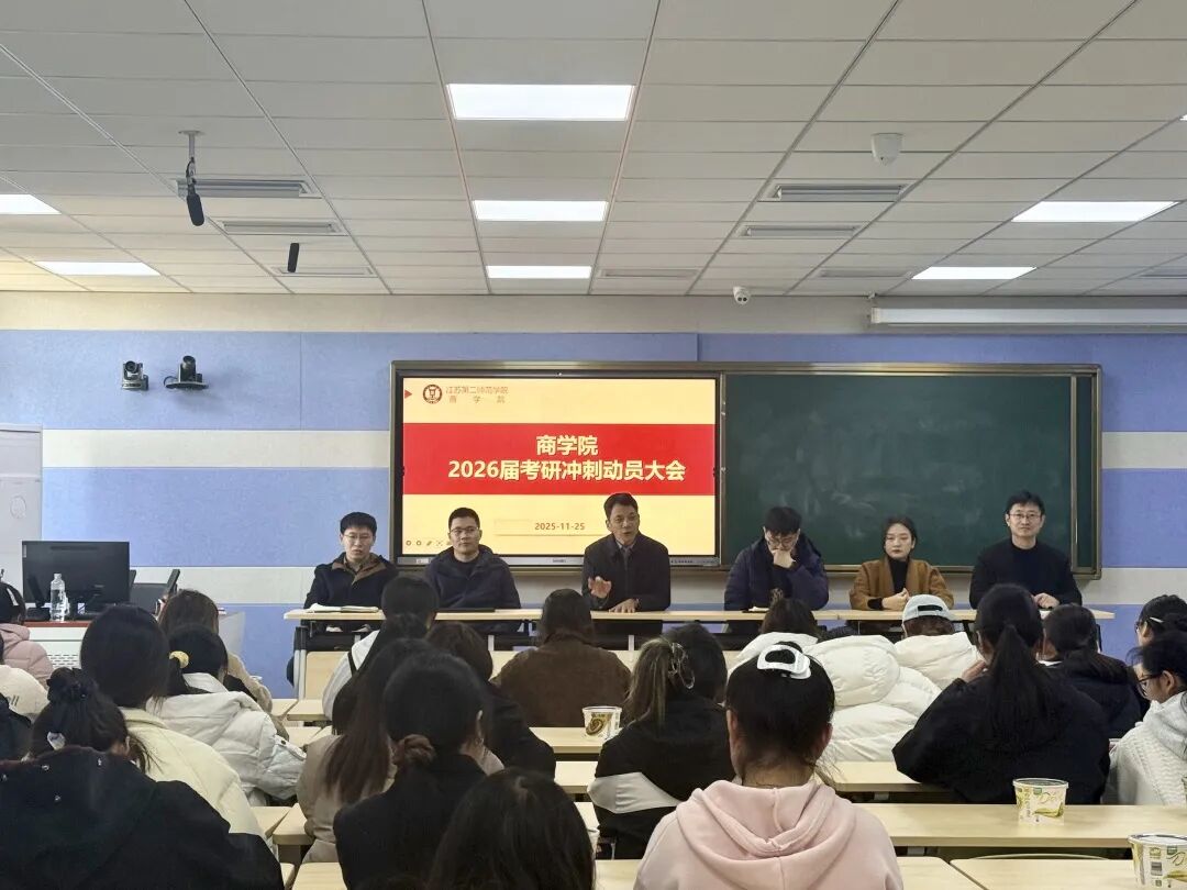 为助力考研学子调适心理状态、明确前进方向,凝聚决战决胜的信念与力量,商学院于11月25日下午在崇文楼2 - 414室举办了2025考研冲刺动员大会暨温暖关怀经验分享活动。